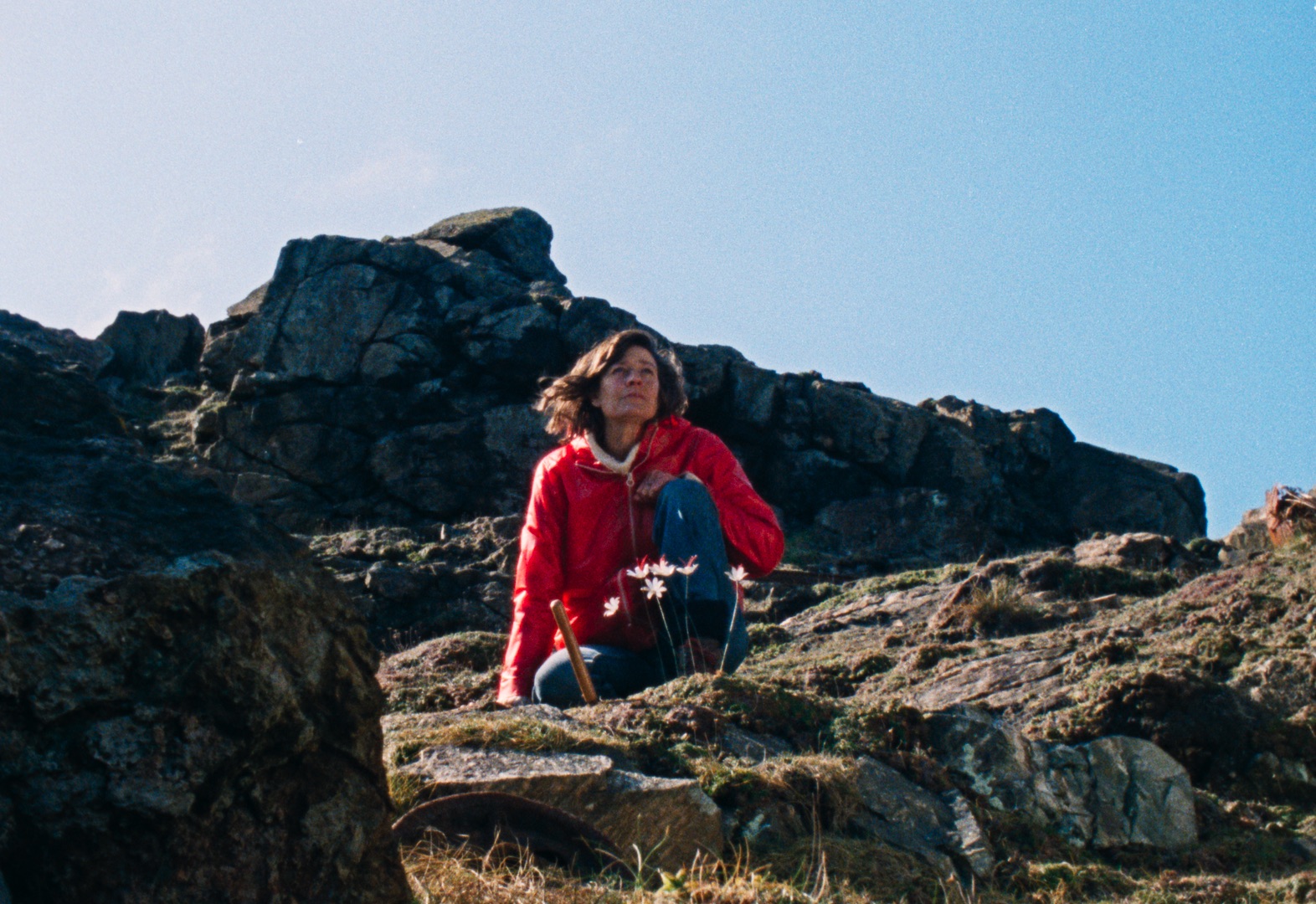 « Une femme, une île déserte, et presque pas de dialogues : on pourrait croire que le minimalisme apparent d’Enys Men serait synonyme de limpidité. Après tout, que peut-il bien arriver de complexe avec un postulat de départ aussi nu ? On est ravi d’avoir tort car, par le tour de magie de mise en scène, Mark Jenkin parvient au contraire à faire monter en neige sur ce minuscule récif une dimension énigmatique proprement fascinante. Enys Men signifie île rocheuse en cornique, la langue celtique parlée dans la région des Cornouailles. On ignore si c’est bel et bien le nom de l’îlot où se déroule le film, mais à vrai dire on ignore tout autant tout le reste : le nom de cette femme, la nature exacte de ses recherches botaniques, la date exacte où tout ceci se déroule. Cette absence délibérée de réponses est contrebalancée par une mise en scène hallucinée, à mi-chemin entre le bucolique et la terreur, capable de transformer la moindre promenade en bord de mer et rituel surnaturel, le moindre vêtement rouge en spectre de Nicolas Roeg, le moindre tas de cailloux en monolithe kubrickien. Dans son premier film, le fascinant Bait (passé au Festival de La Roche-sur-Yon), le cinéaste britannique Mark Jenkin faisait déjà preuve d’une incroyable inventivité visuelle : images vieillies et retravaillées artificiellement, montage à la poésie brute, paysage sonore méticuleux aux reliefs inattendus. On la retrouve ici dans toute sa singularité, mais elle n’est plus utilisée comme contrepoint à un récit ancré socialement (tradition et modernité dans un port de pêche). Dans Enys Men, Jenkin largue encore davantage les amarres du réel, utilisant et redistribuant avec un appétit contagieux les éléments de la folk horror. Enys Men est un long métrage trop unique pour qu’on puisse l’accuser de suivre des recettes, surtout celles des autres. Au-delà des échos cinéphiles que l’on peut s’amuser à glaner ça et là (comme l’héroïne qui semble voyager dans le temps à mesure qu’elle cueille des fleurs), le film fait preuve d’une absence de concessions admirable, d’une réelle radicalité dans sa manière de privilégier une mise en scène sensorielle et intense à un récit convenu. A rebours de toute classification évidente, Enys Men est un voyage hypnotisant, une œuvre brève et stupéfiante comme une éclipse. » Le Polyester